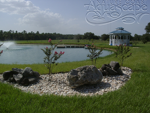 For customers looking for something larger than a water garden, Nature Coast Aquascape offers custom lake construction of any size. Whether you have residential acreage and want to add the luxury of your own stocked fish pond or fountain. Or if you have a large residential or commercial development project needing a large lake environment, Nature Coast Aquascape has the knowledge and experience to succefuly complete your project, no matter how large it is. Contact us today at 727-258-4114 for specific information.