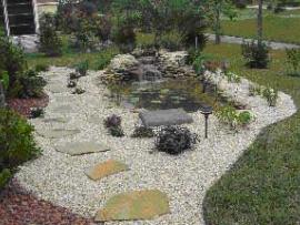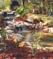 Answer: Water gardens installed by Nature Coast Aquascape should offer 20 years plus of enjoyment. At Nature Coast Aquascape we use a 45 mil EPDM liner which has a 20 year guarantee against any UV breakdown. The filters we use are made of polyethylene and will not crack, break or develop leaks. We have many pumps to choose from, with life expectancies of three to five years. The rocks we use are real River rock from North Carolina and other Northern states. |